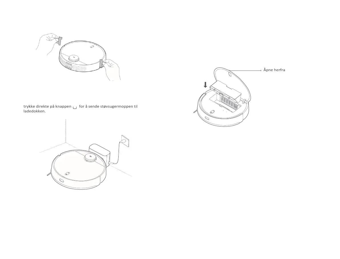 • Støvsugermoppen slår seg automatisk på når den er koblet til ladedokken, og kan ikke bli slått