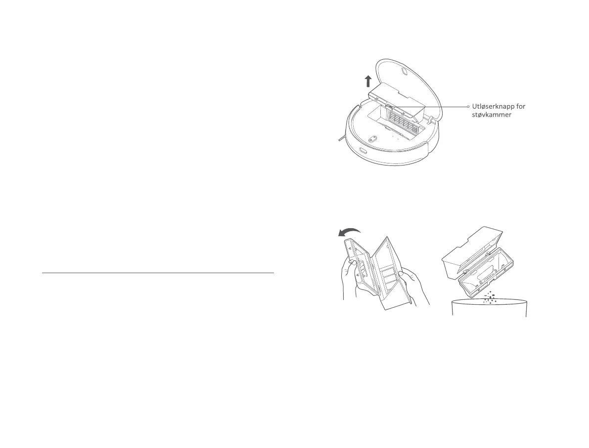 1. Åpne dekselet på støvsugermoppen, og trykk på støvkammerets utløserknapp