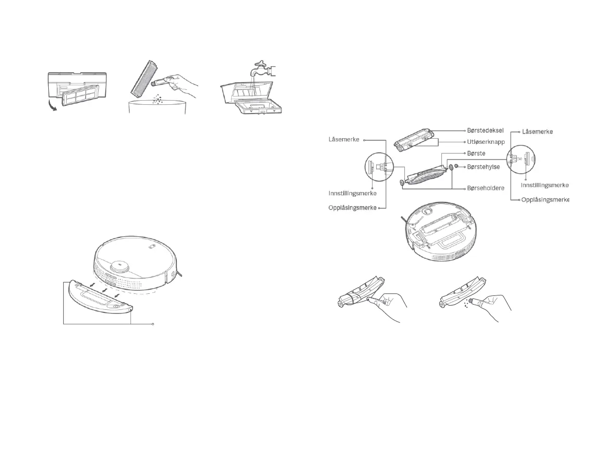 Merk: Det er anbefalt å rengjøre støvkammeret grundig minst en gang i uken. Sørg for å tørke