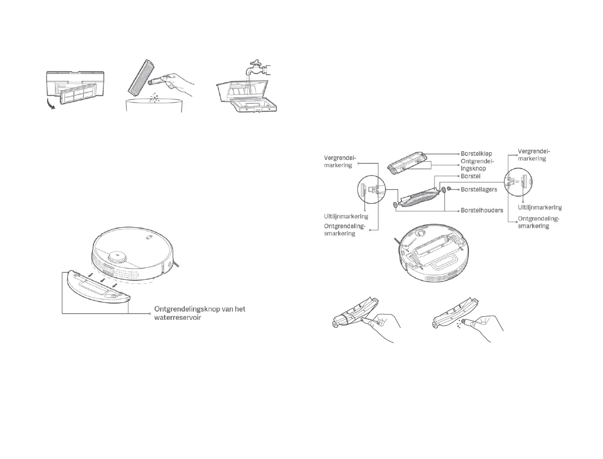 ontgrendelingsknoppen ingedrukt om de borstelklep te verwijderen.