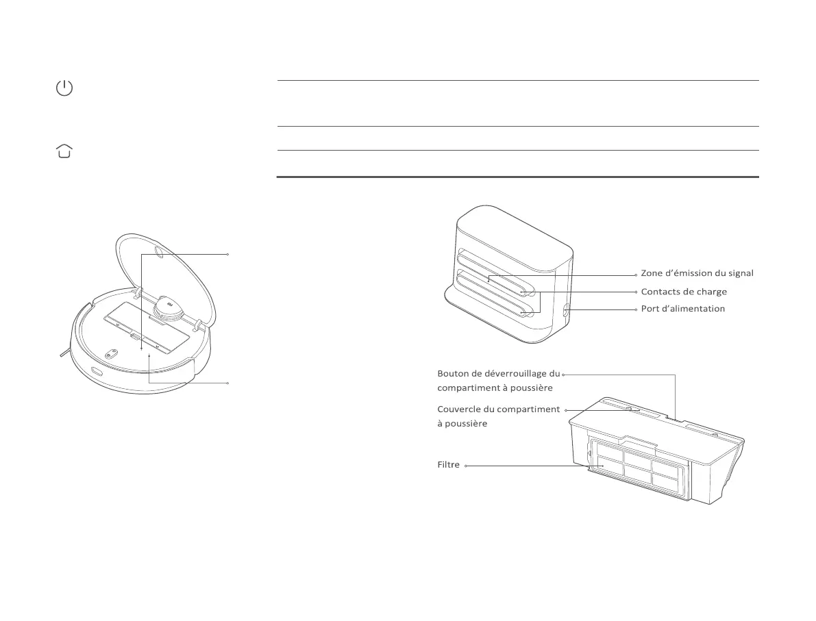 Démarrer le retour au socle : appuyez lorsque l’appareil est en pause. Arrêter le retour au socle : appuyez lorsque l’appareil retourne au socle.