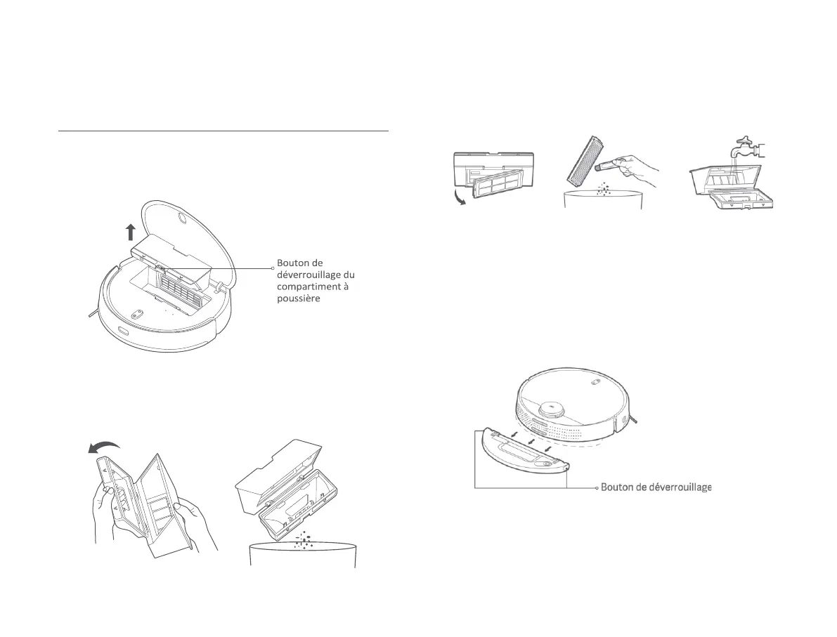 compartiment à poussière ainsi que le filtre, puis rincez-les à l’eau claire.