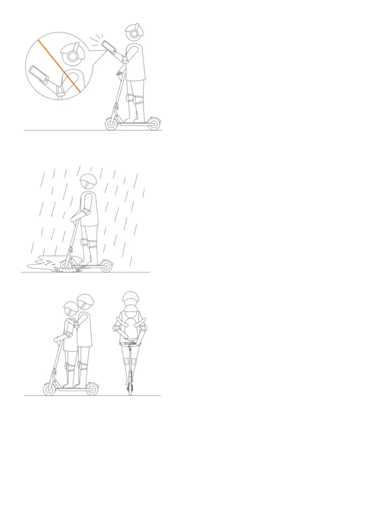 Do not ride in the rain. Do not ride through puddles or any other (water) obstacles.