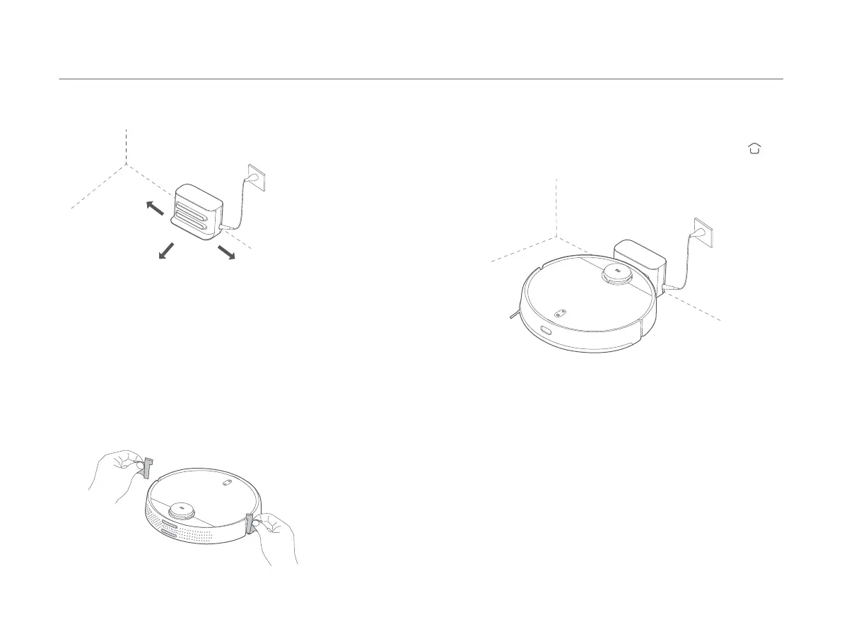 • Odkurzacz z mopem włączy się automatycznie, gdy znajdzie się w stacji ładującej i nie