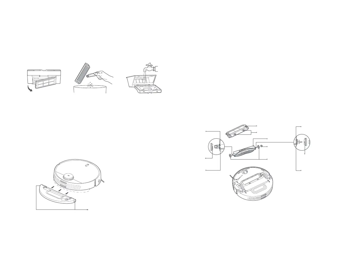 compartimento do pó e o filtro e, de seguida, lave-os com água limpa.