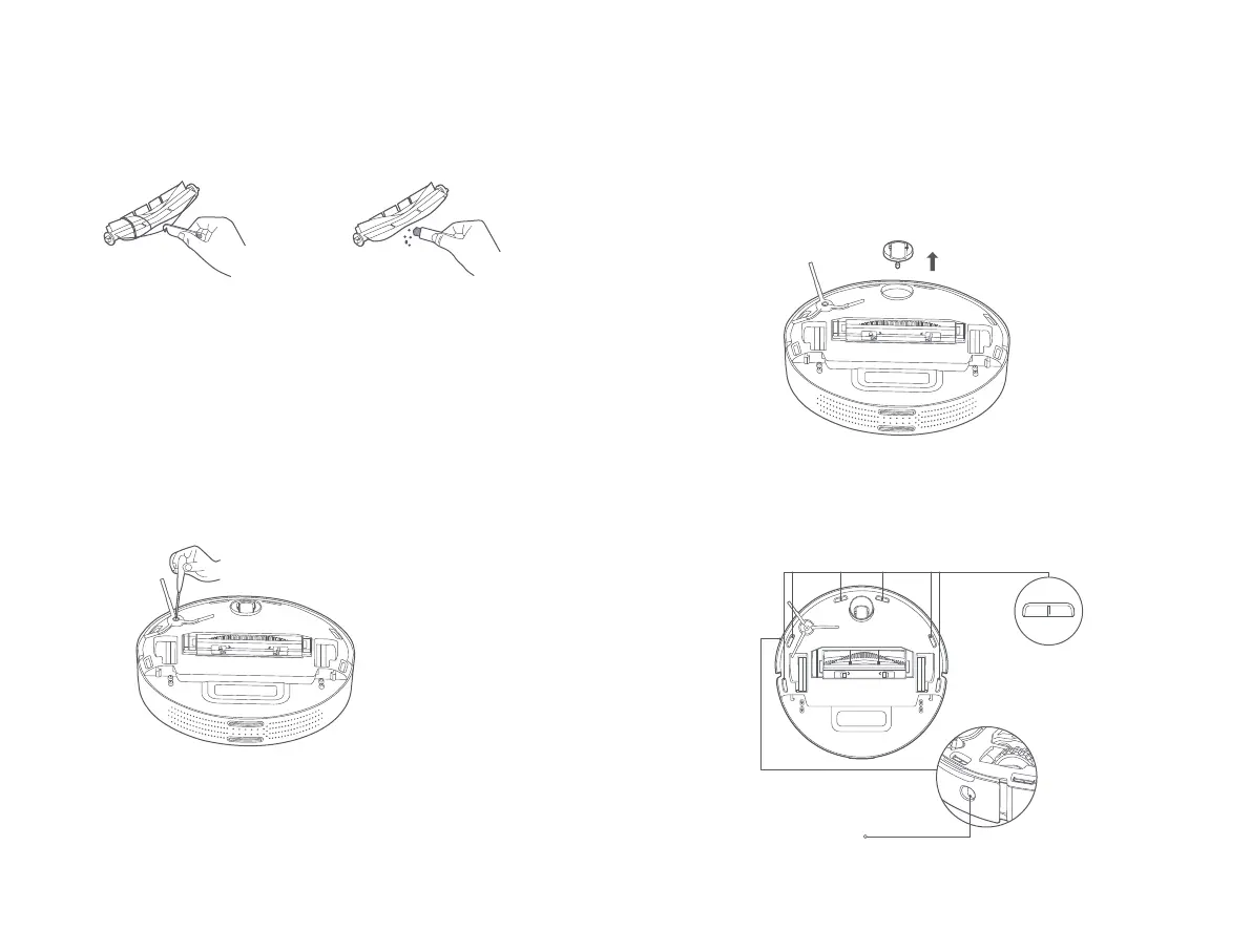 1. Răsturnați aspiratorul cu mop și scoateți șurubul care fixează peria