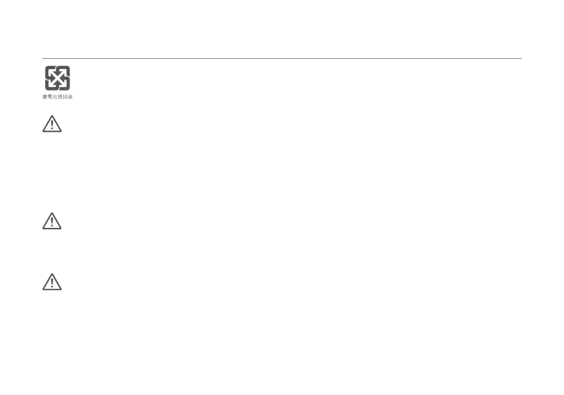 - 將電池扔入火中或熱烤爐中或採用機械方式擠壓或切割電池,可能會導致爆炸。