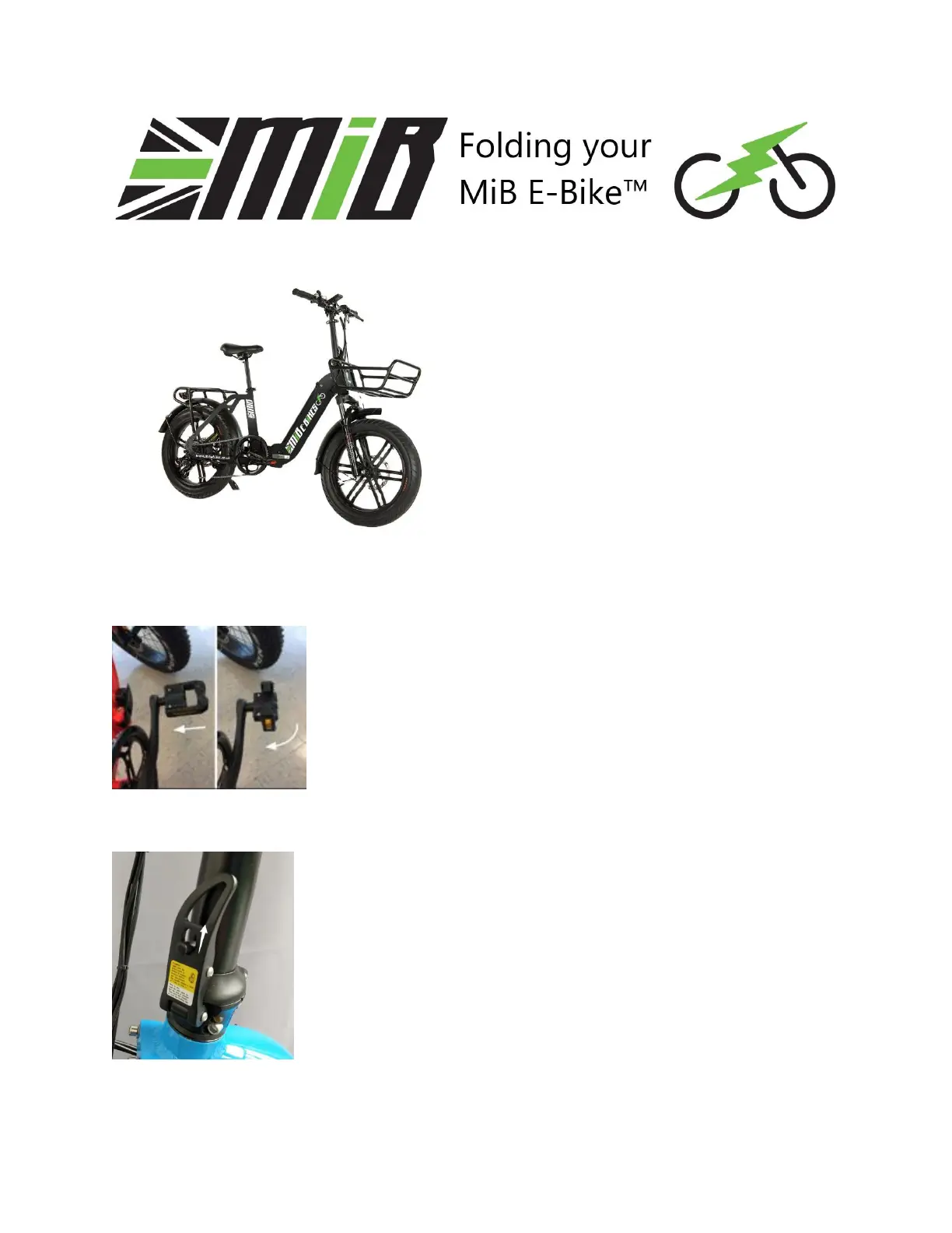 MIB Commuter - Folding your MiB E-Bike; Fold the Pedals; Fold the Handlebar and Stem