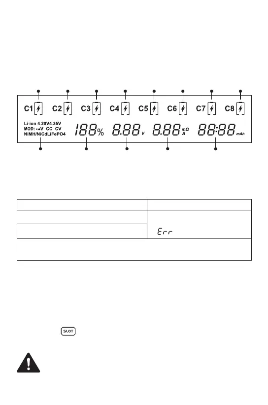 2. Put the battery into any channel, the charger starts to detect battery-related