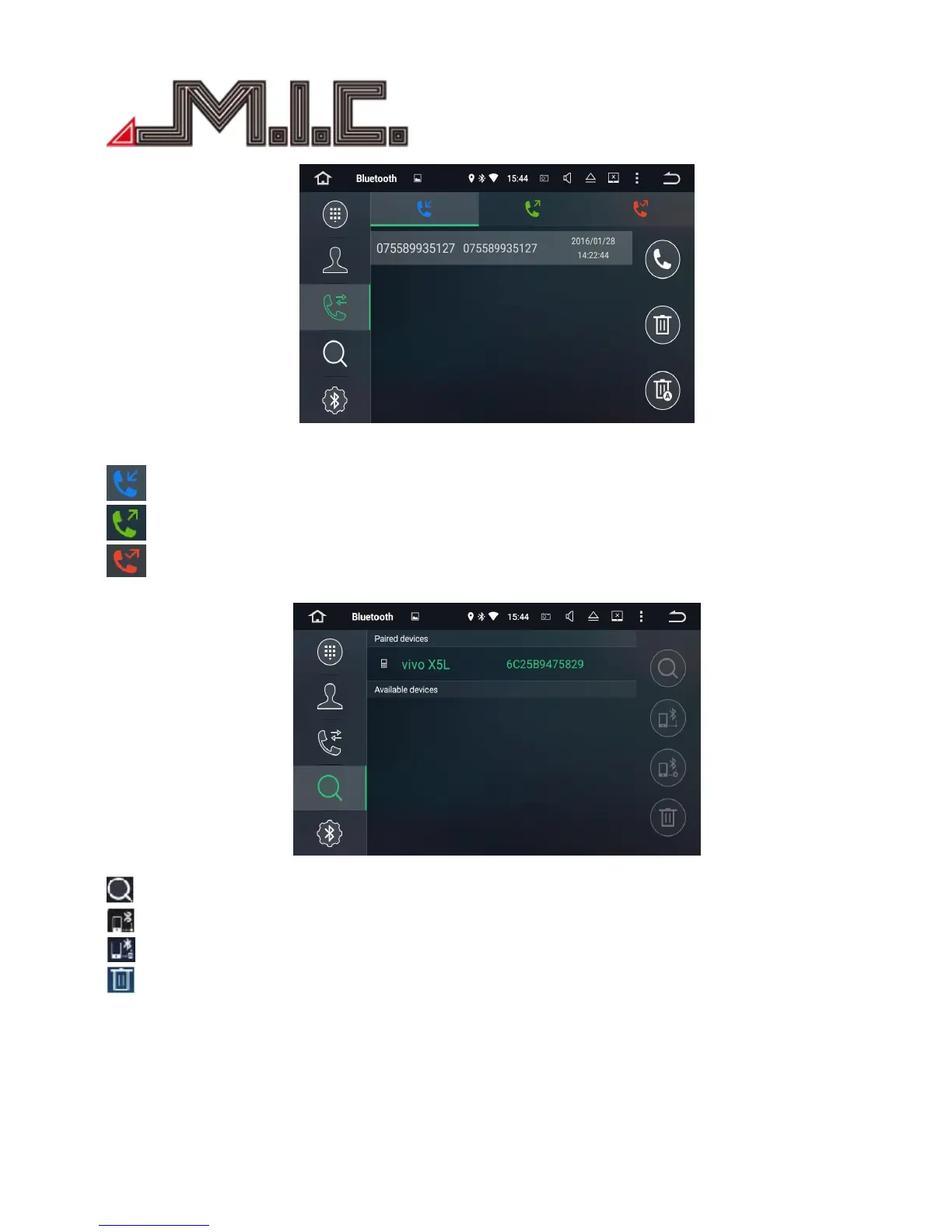 Mic AV8 - Bluetooth Phone Book and Pairing; Managing Call Logs and Contacts; Device Pairing Management