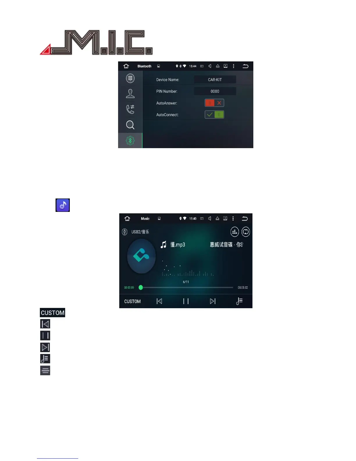 Mic AV8 - Bluetooth Settings and Music Playback; Bluetooth Device Configuration; Music Playback Features