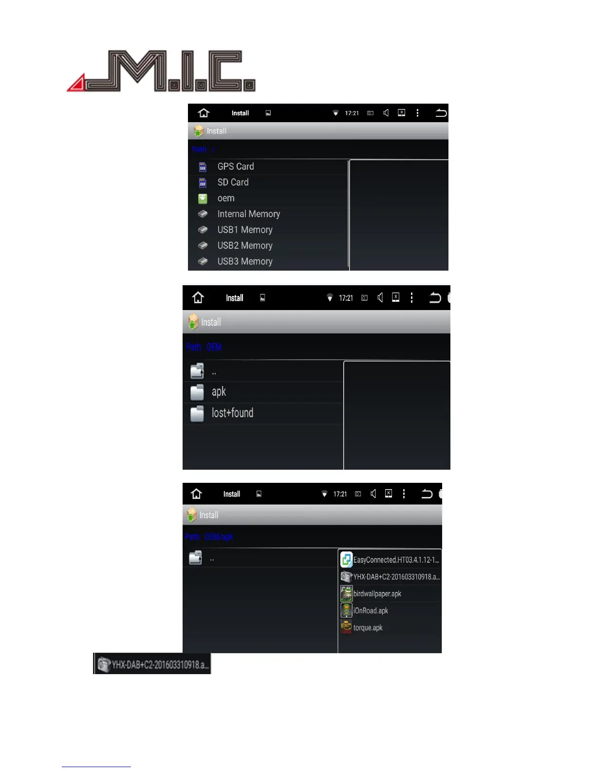 Mic AV8 - DAB+ Installation Steps; Navigating Installation Files
