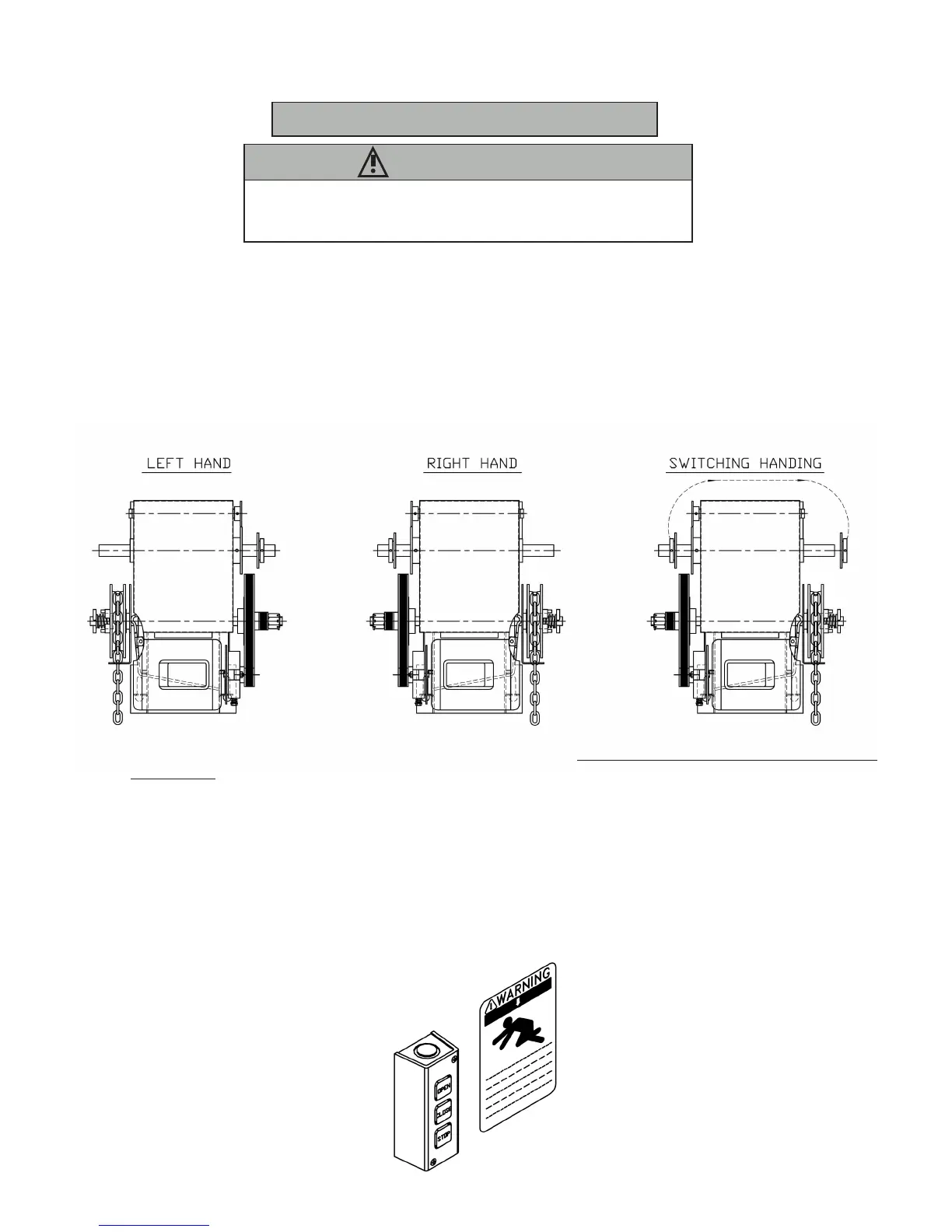time of order. Depending on installation, if handing of chain hoist is not correct the hand chain may hang in door