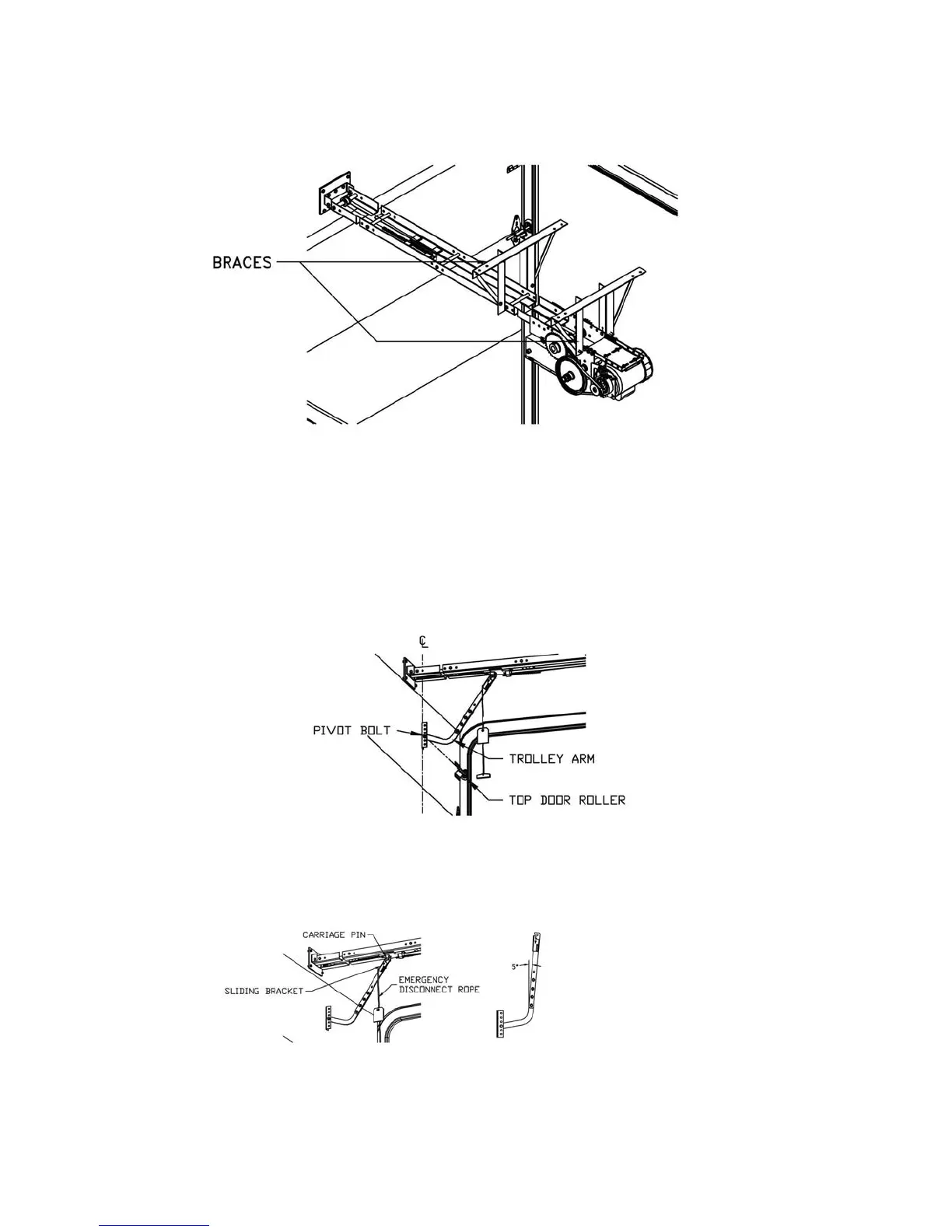 1. Manually close door to fully closed position. Slide trolley carriage towards front idler and latch trolley arm to carriage