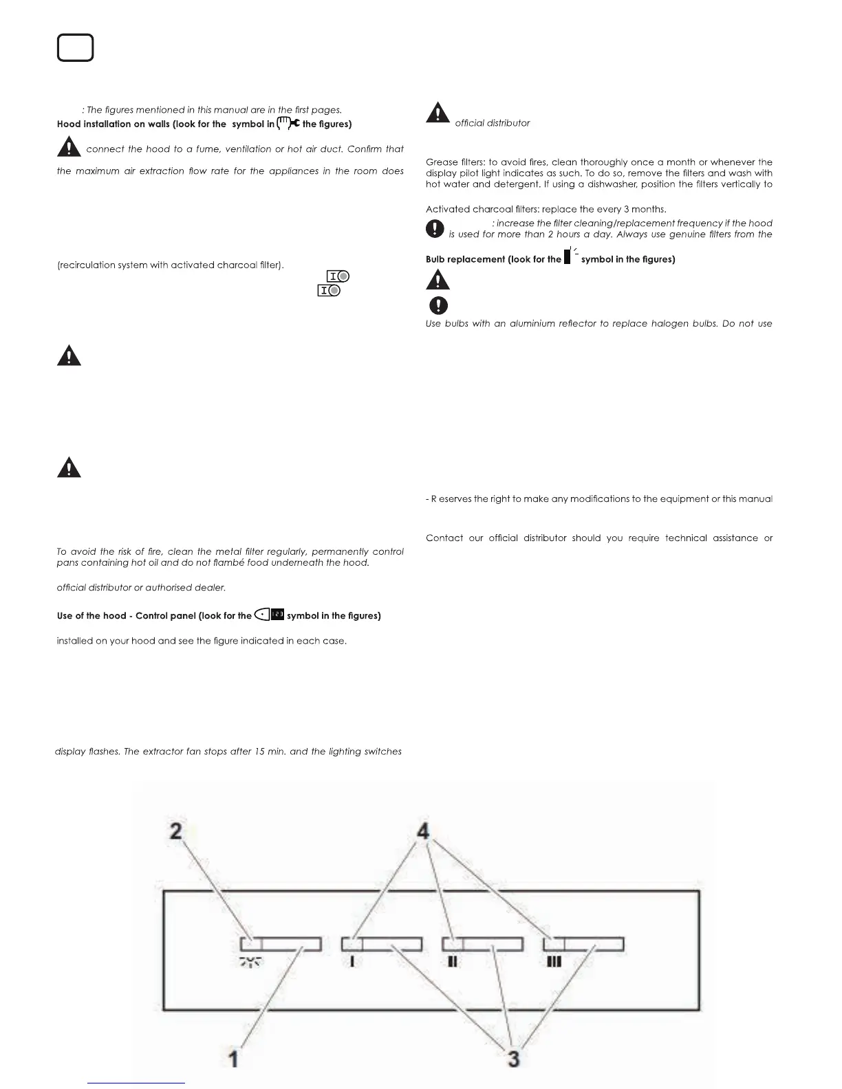 3- Extractor fan speed - button: speed 1, 2 and 3 Press the current speed again