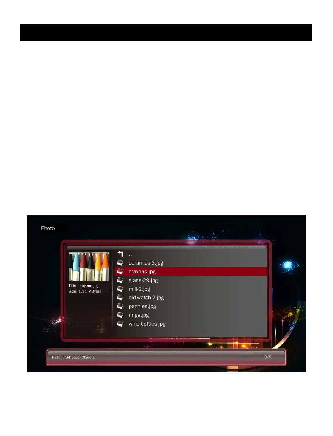 1. From the home menu, select the Photo icon and press <OK> on the remote to