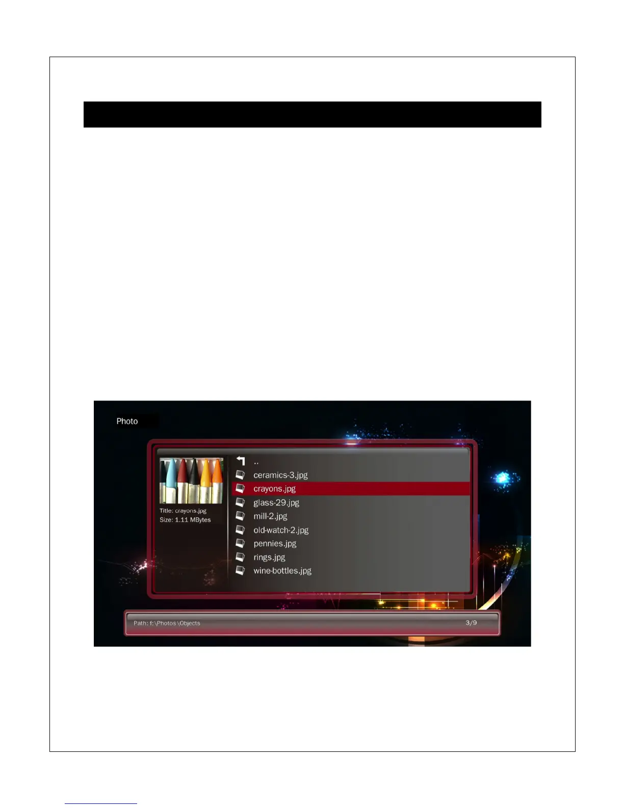 1. From the main menu, select the Photo icon and press <OK> on the remote to