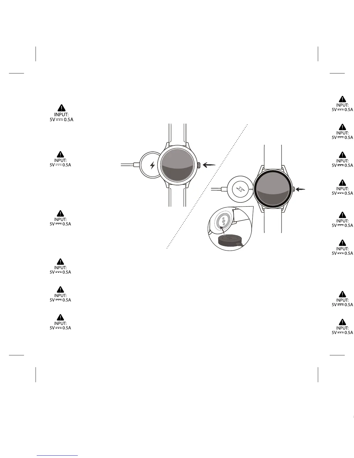 警告:時計への損傷を避けるため、同梱の充電器のみご使用ください。 USBハブ、USBスプリッター、USB Yケーブル、電池パック