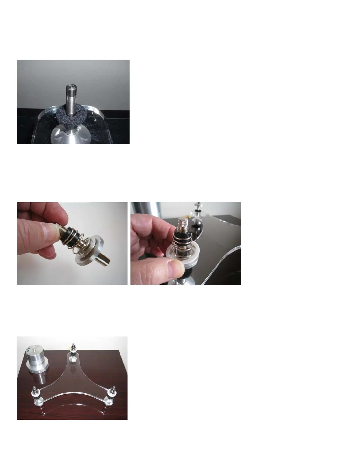 black Delrin bushing. Then locate the three hollow spring support towers onto the three support spindles on top of the acrylic