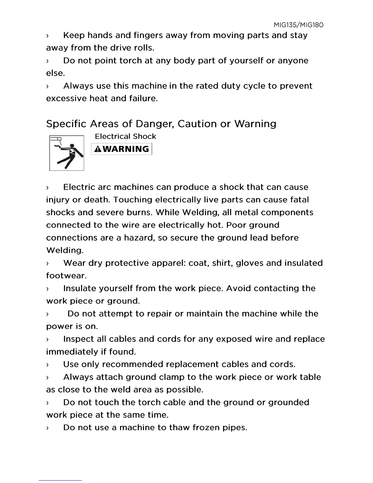 Michigan Welding MIG180 - Electrical Shock Hazards