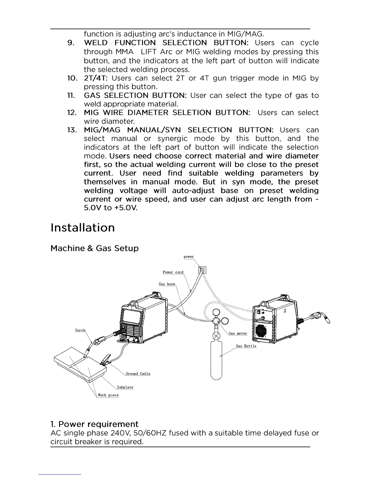 Michigan Welding MULTI200 - Machine and Gas Installation Guide
