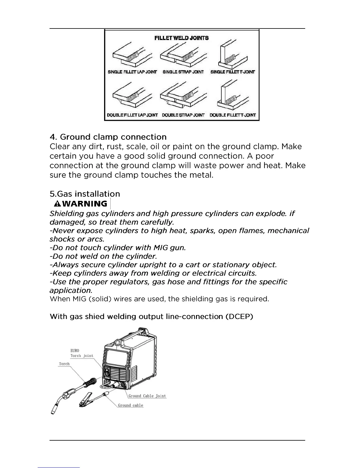 Michigan Welding MULTI200 - Ground Clamp Connection; Gas Installation; Settings of Different Wire Welding Ways