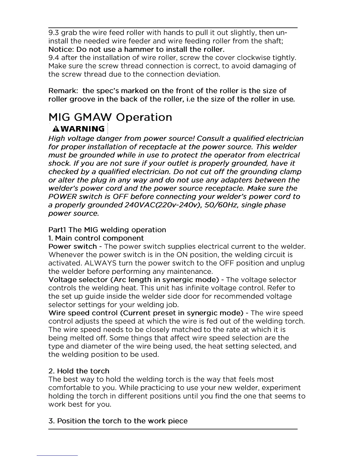 Michigan Welding MULTI200 - Welding Procedures; MIG;MAG Welding Operation