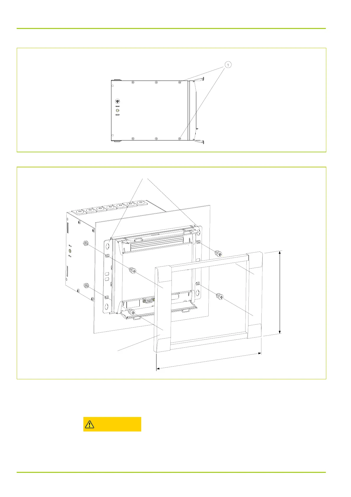 Fig. 5-5: Installation of a case into a control panel, flush-mount method 2 (with angle brackets and frame). Example