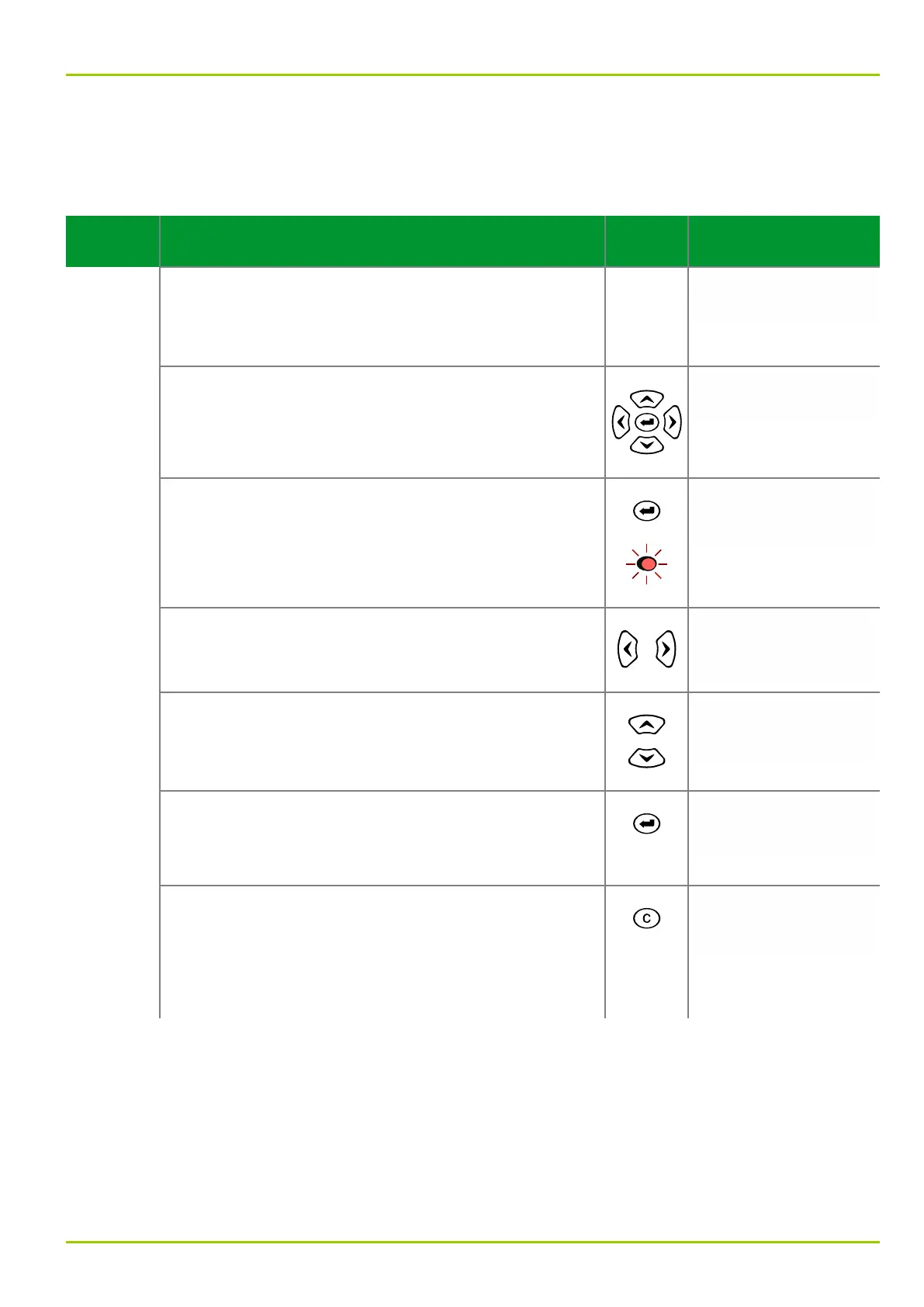 Change the value highlighted by the cursor by pressing