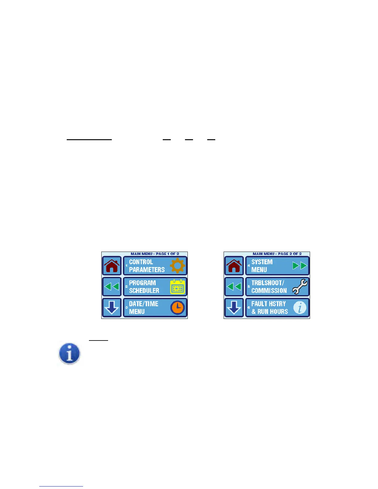 All menu screens are constructed identically as shown in Figure 14. There are three large buttons to