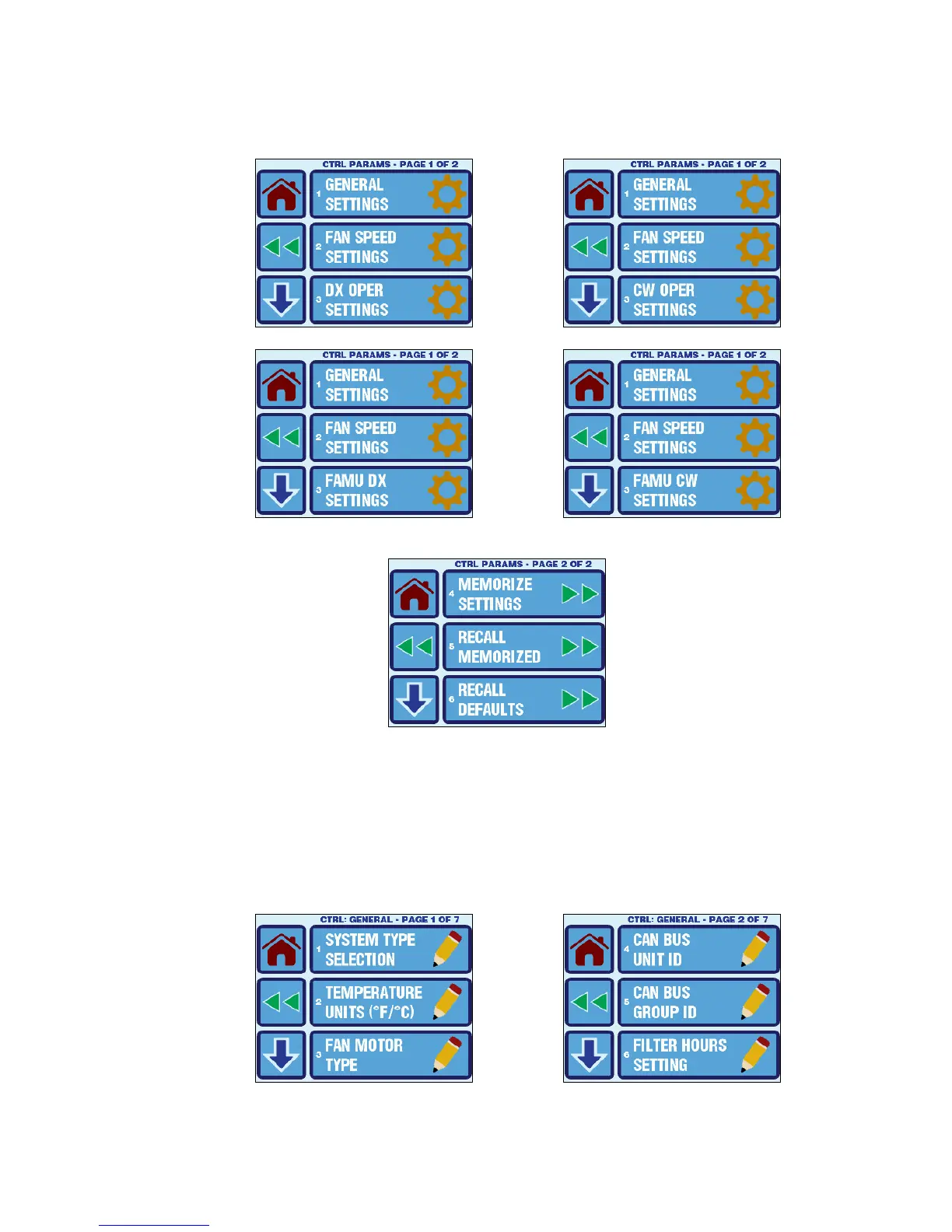 Figure 16 – Control Parameters Menu Screen – Page 1 of 2 (shown for various System Types)