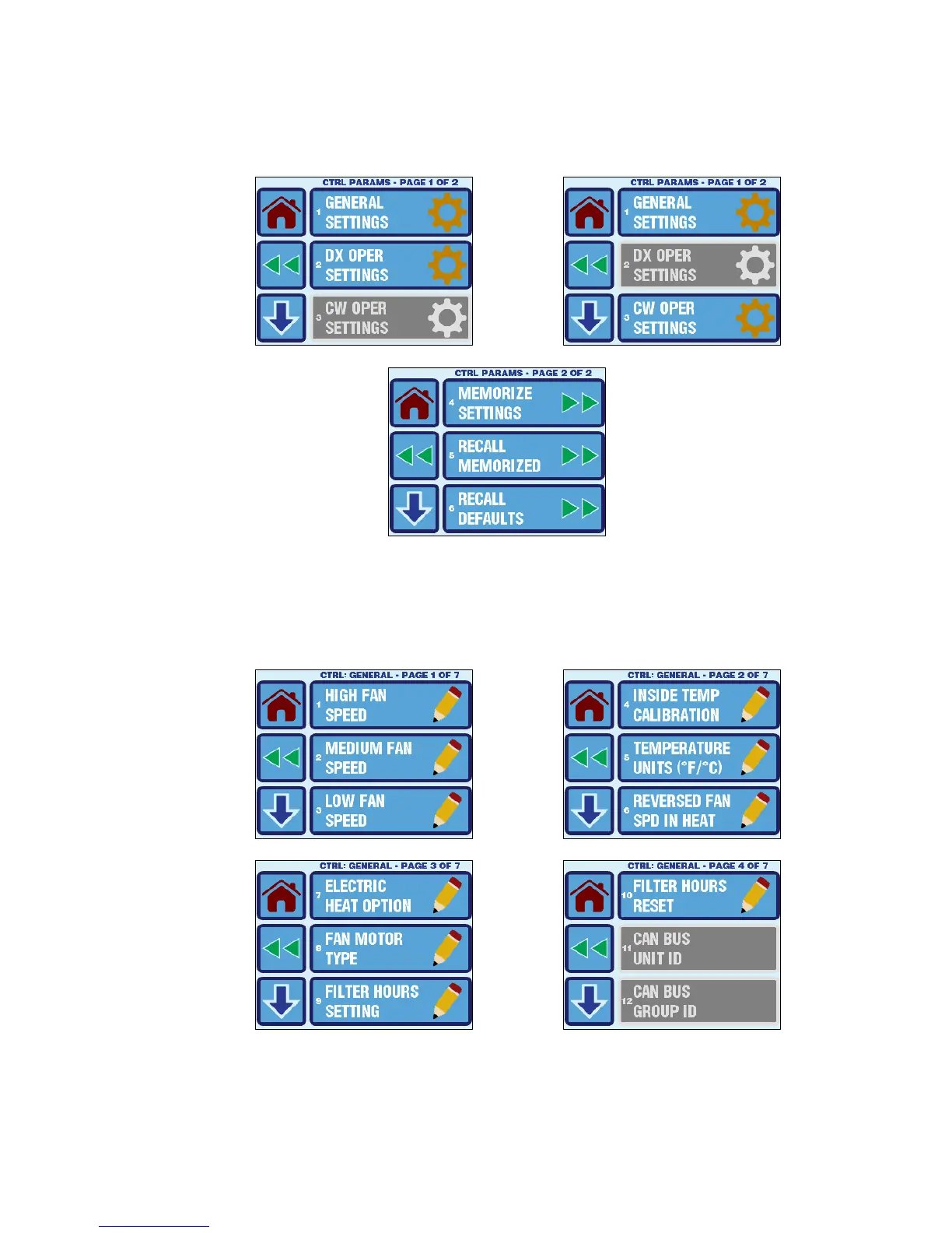 The Control Parameters Menu consists of 6 items on 2 pages as shown in Figure 12. Page 1 of the menu