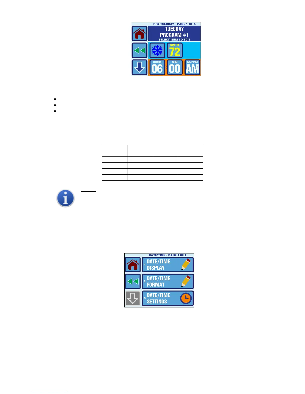 The default program settings for each day of the week are shown in Table 5. Use this table as a