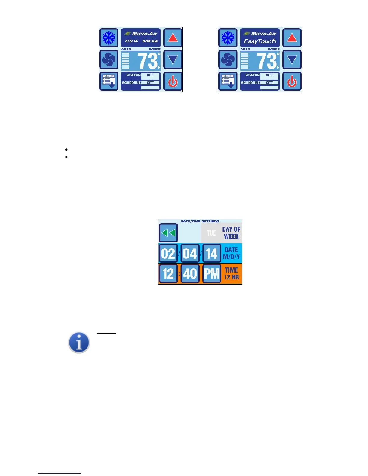 EasyTouch will detect this date & time reset and immediately display the Date/Time