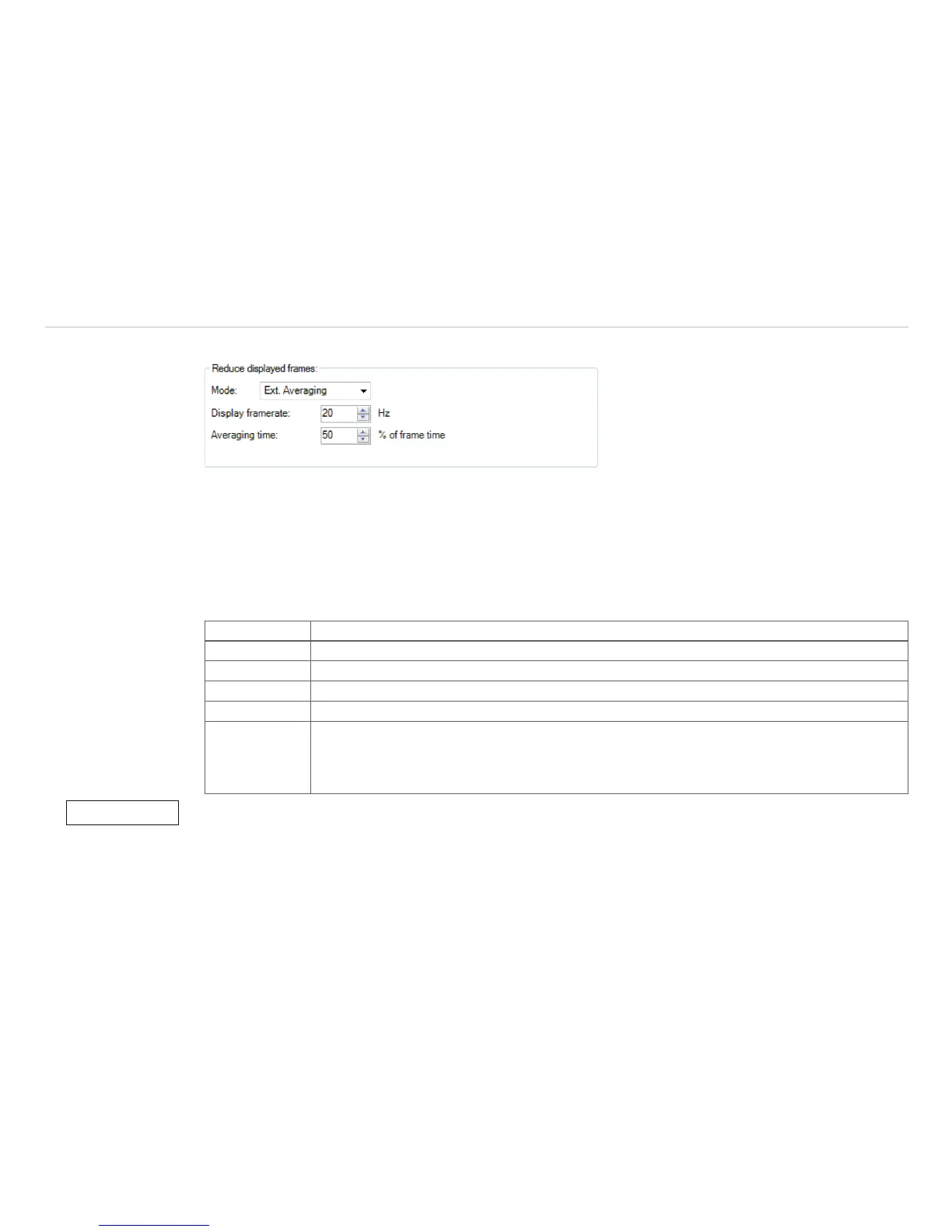averaging time indicates how many percent of the set frame time should be averaged. In