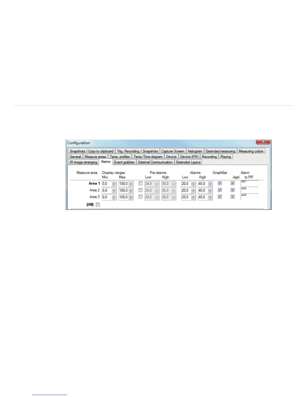 For more information on the settings for alarms, see Chap. 6.8.