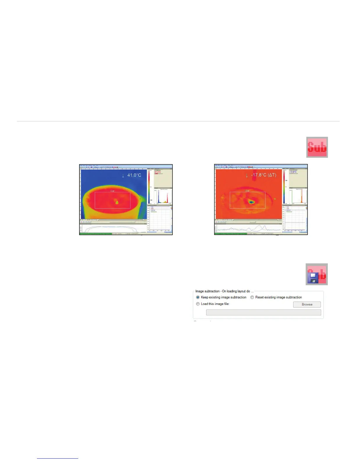 or via the Icon on the toolbar, an image is saved in the background and a temperature differ-
