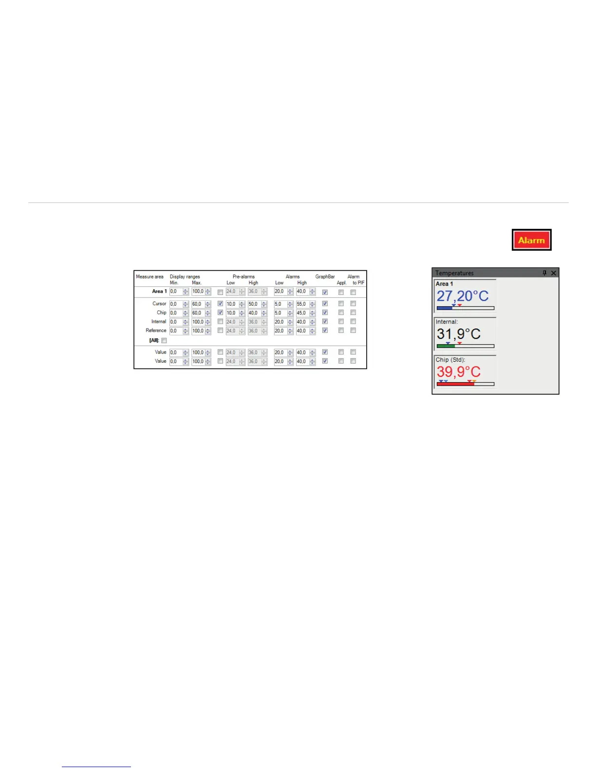 alarm light blue. Temperatures in between the defined thresholds are displayed green.