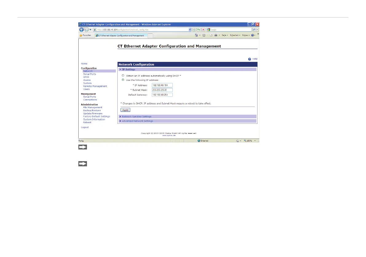 For a communication with the adapter you now have to configure the network settings on your PC.