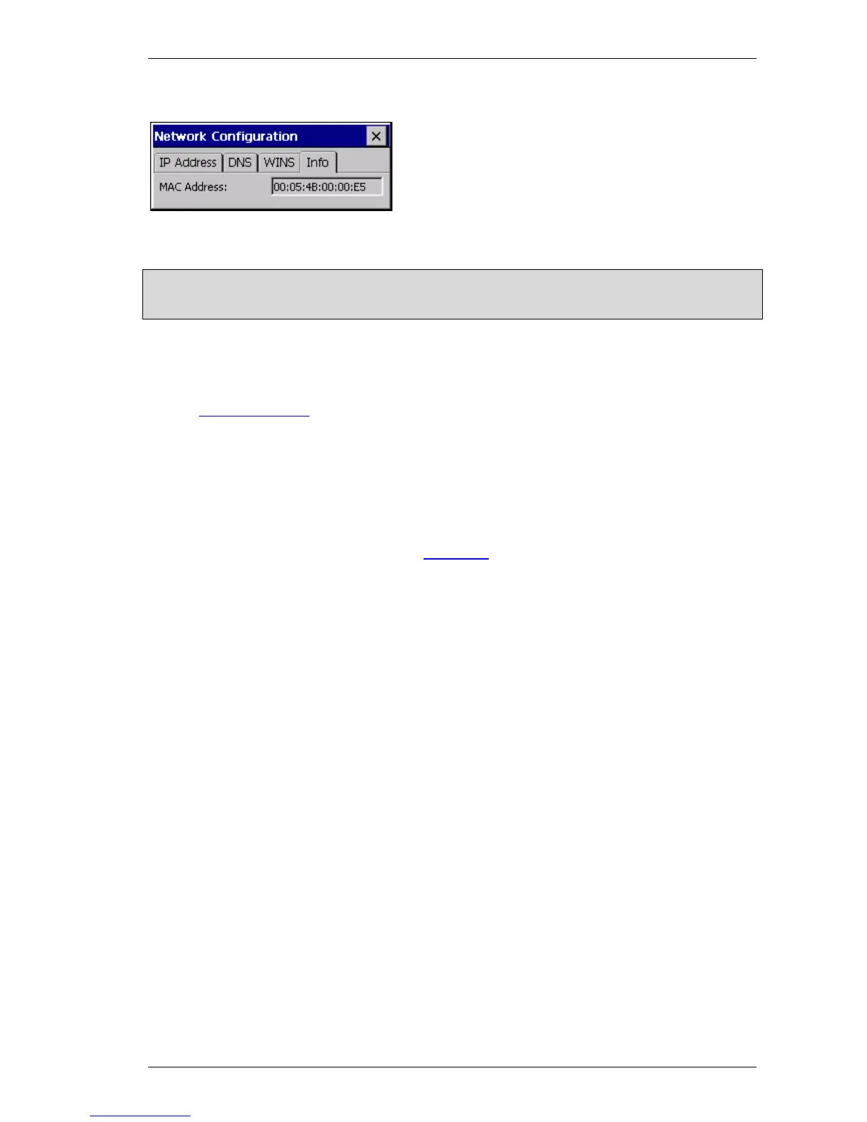The MAC address of the HMI device is displayed in the Info page. This is a manufacturer-specific and