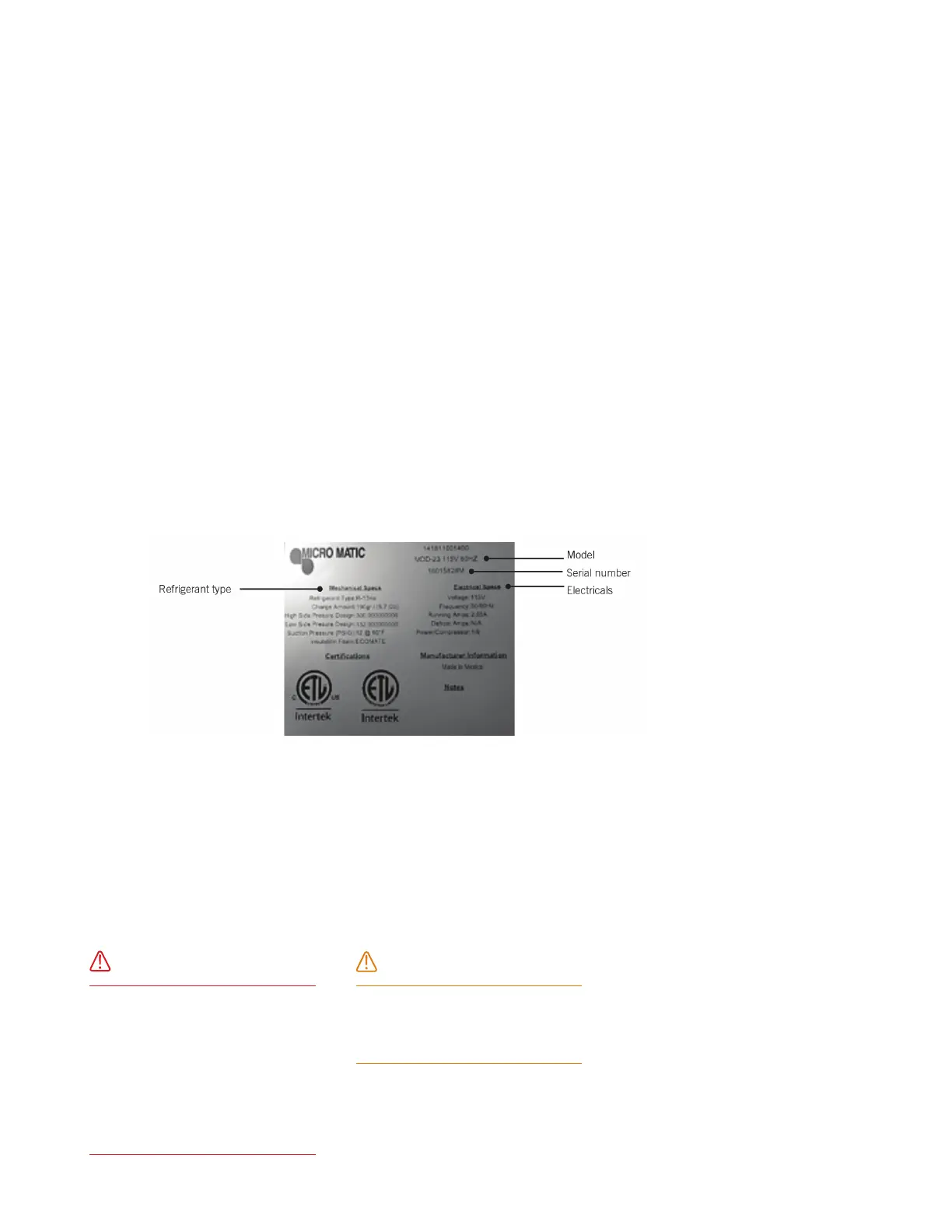 should the data plate be removed from the unit. The data plate is essential to identify the particular