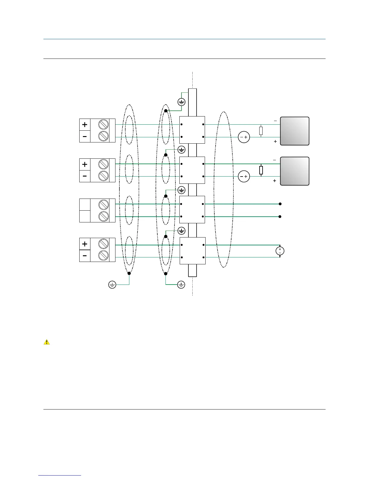 • For safety, do not terminate the inner individual screens to earth in a hazardous area.