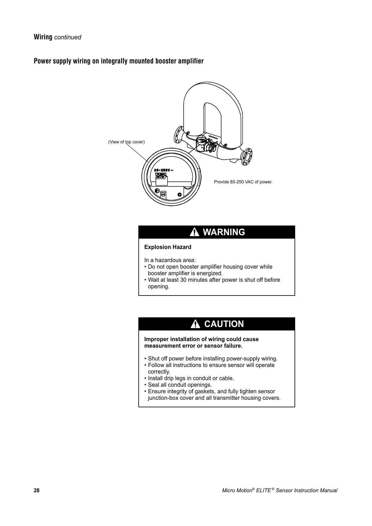 Power supply wiring on integrally mounted booster amplifier
