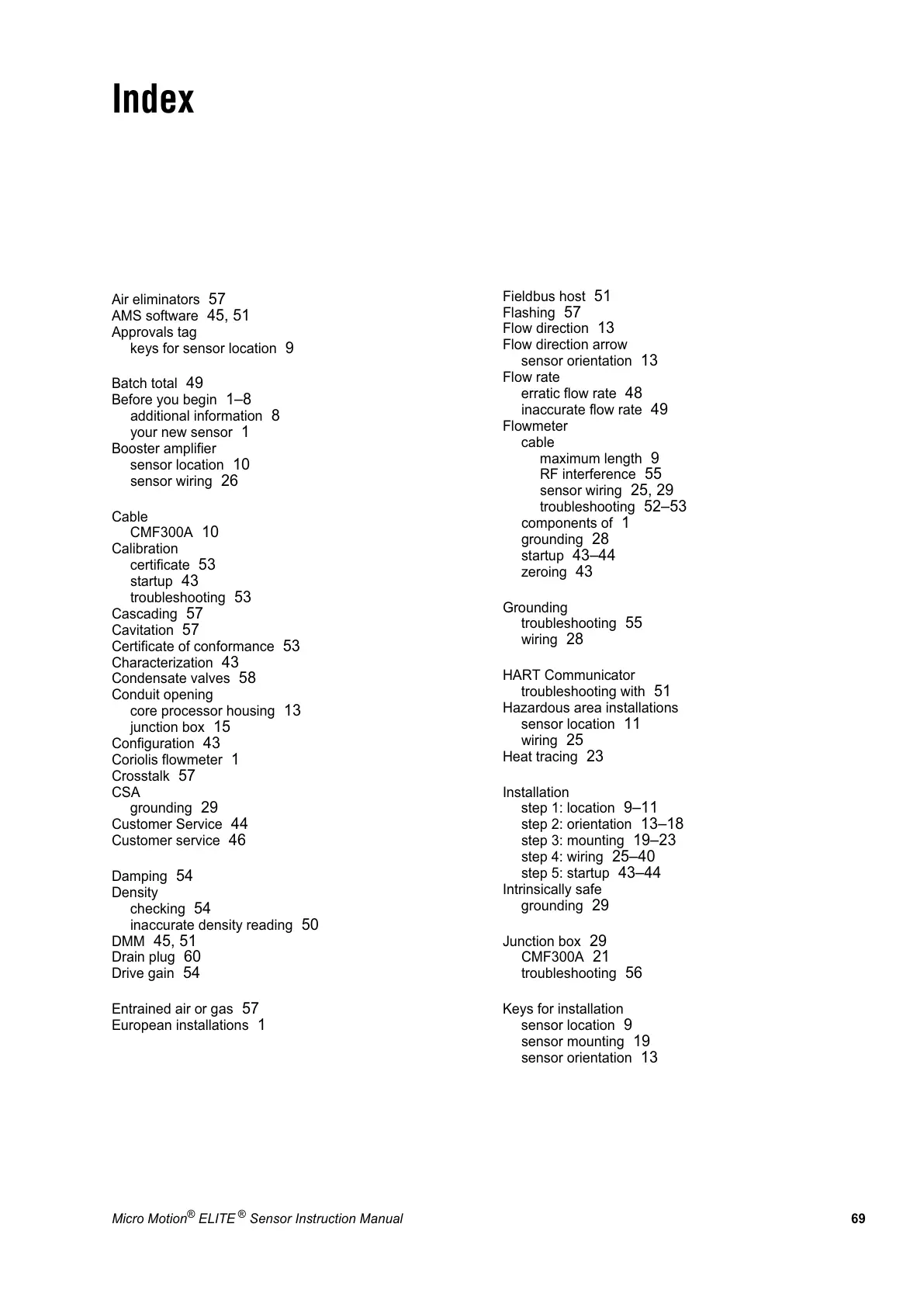Micro Motion CMF Series - Appendix D Return Policy......................67; Index