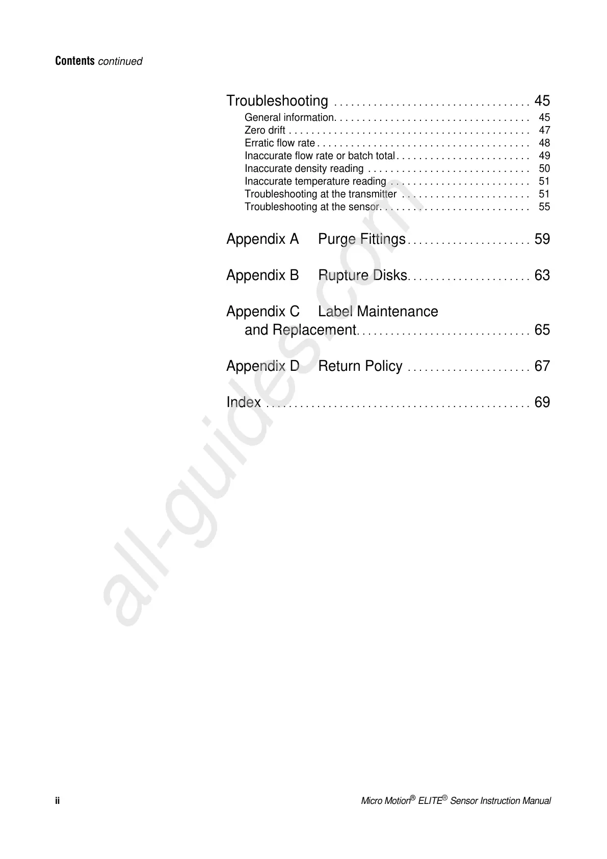 Inaccurate density reading . . . . . . . . . . . . . . . . . . . . . . . . . . . . . 50