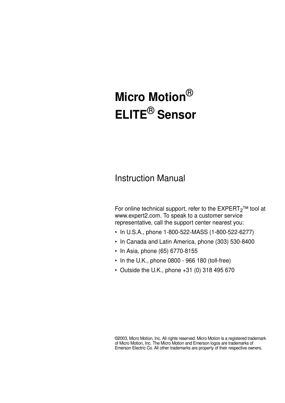 ©2003, Micro Motion, Inc. All rights reserved. Micro Motion is a registered trademark