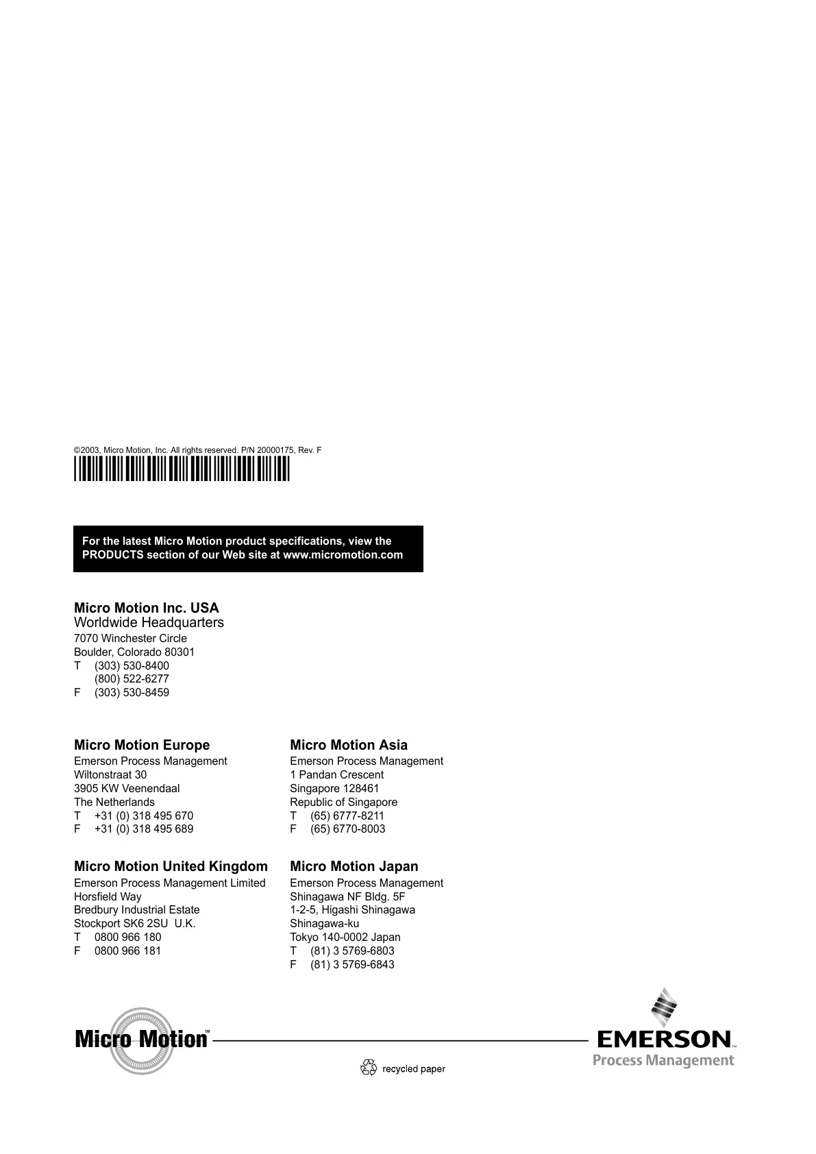 ©2003, Micro Motion, Inc. All rights reserved. P/N 20000175, Rev. F