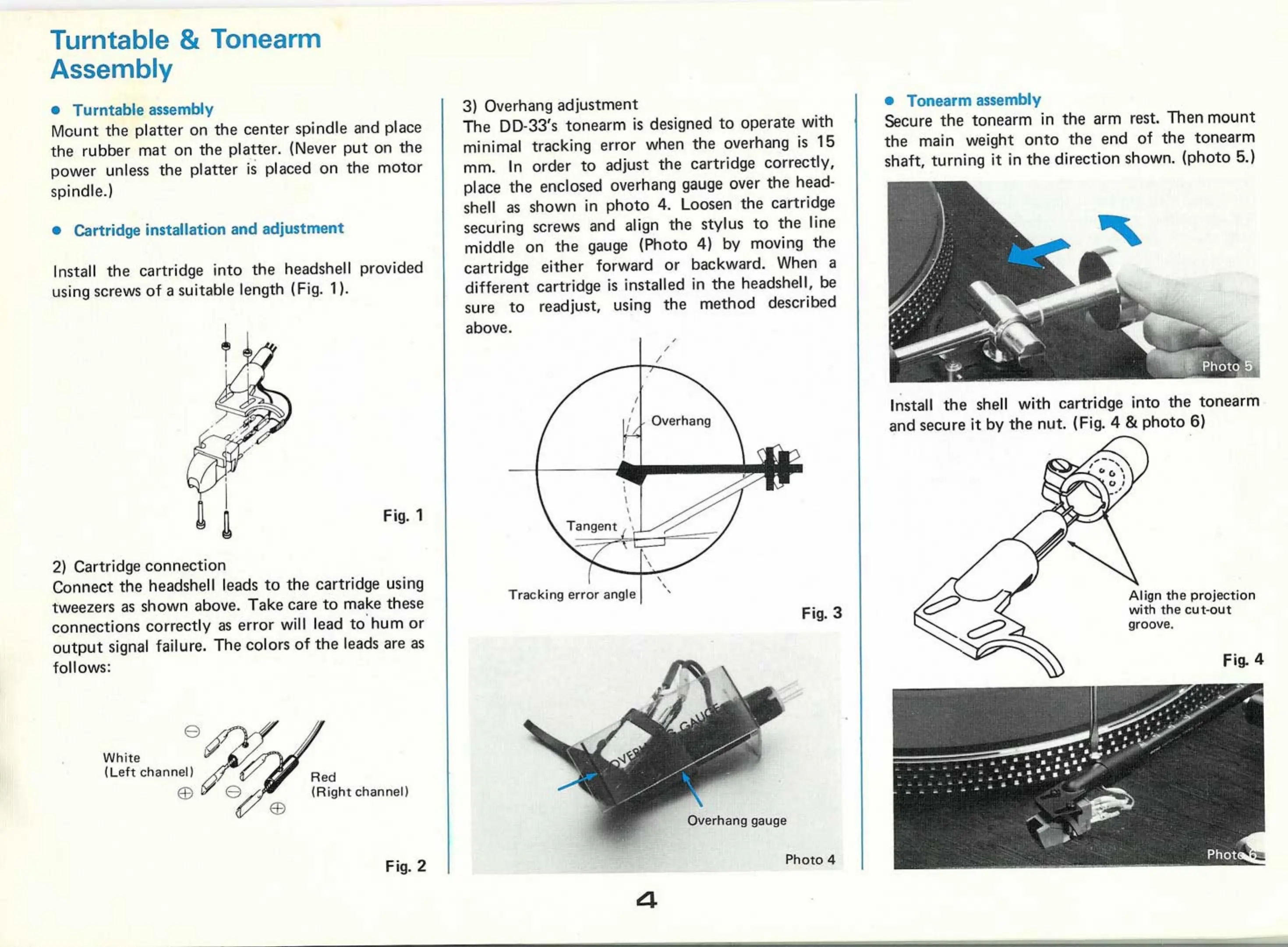 Micro Seiki DD-33 - Turntable Assembly; Cartridge Installation and Adjustment; Tonearm Assembly