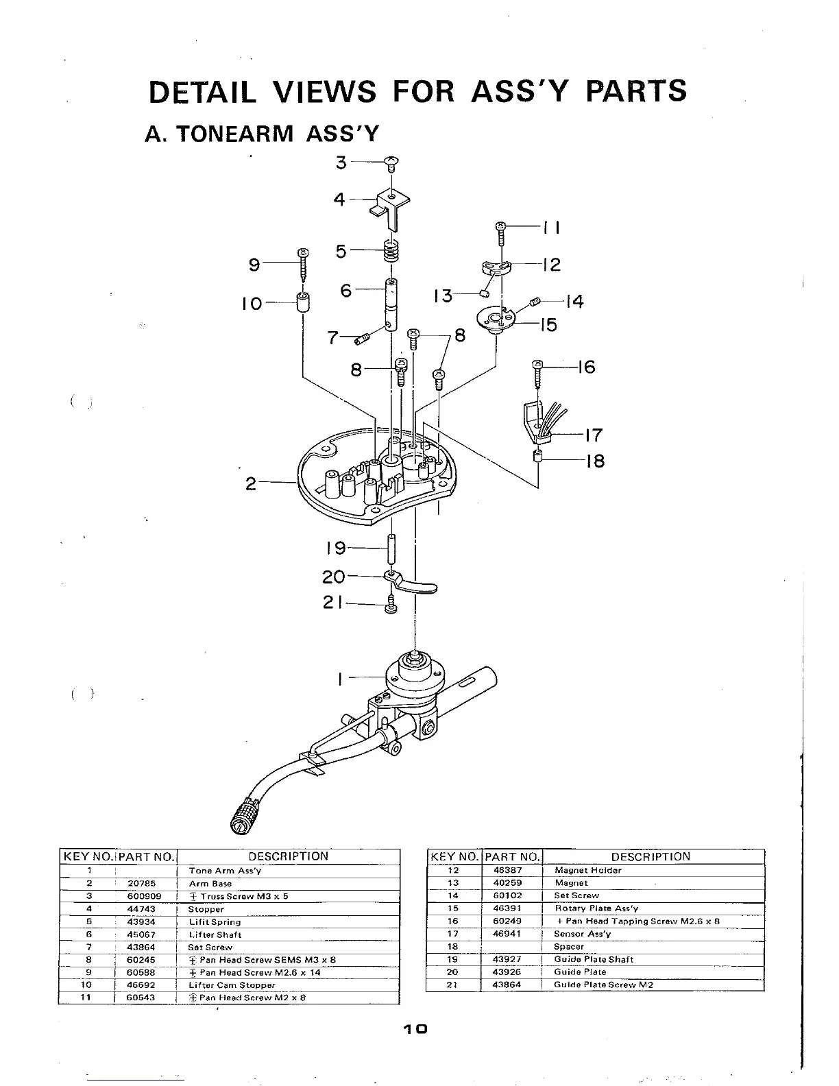 Micro Seiki DD-35 - Detail Views for Assembly Parts; Tonearm Assembly