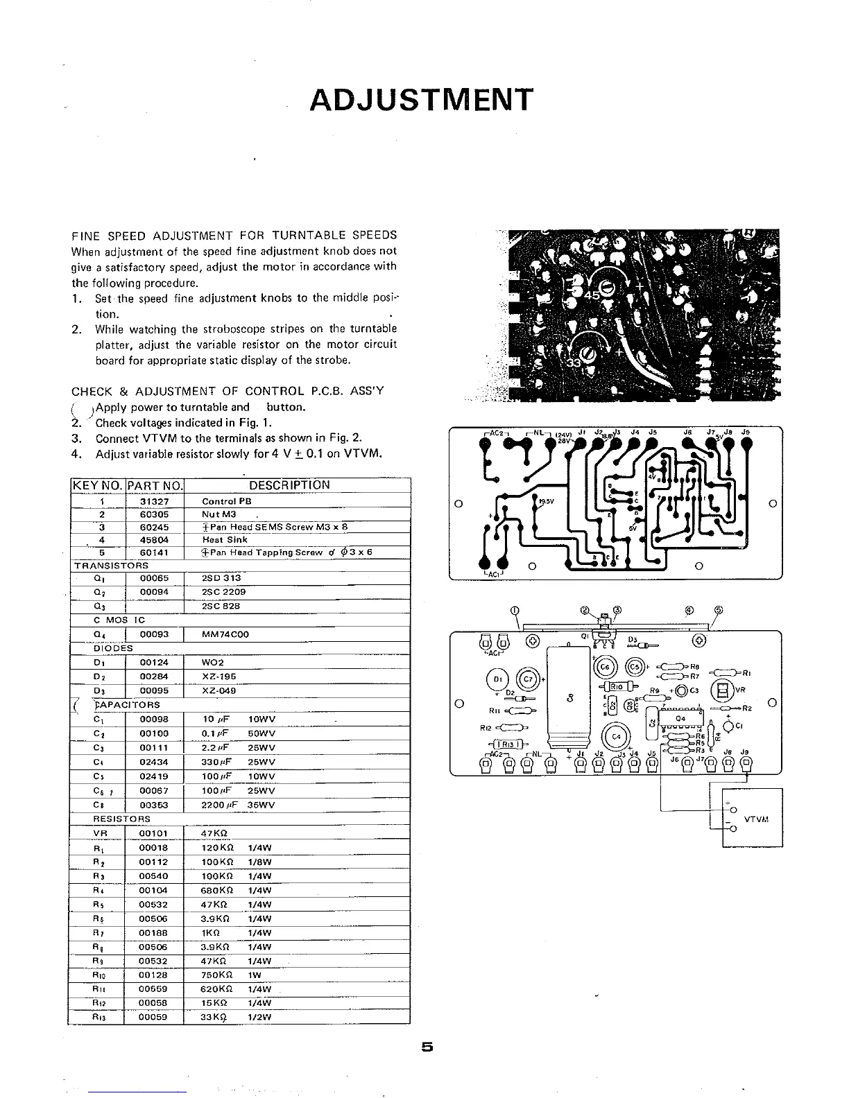 Micro Seiki DD-35 - Adjustment; Fine Speed Adjustment for Turntable Speeds; Check & Adjustment of Control P.C.B. Assy
